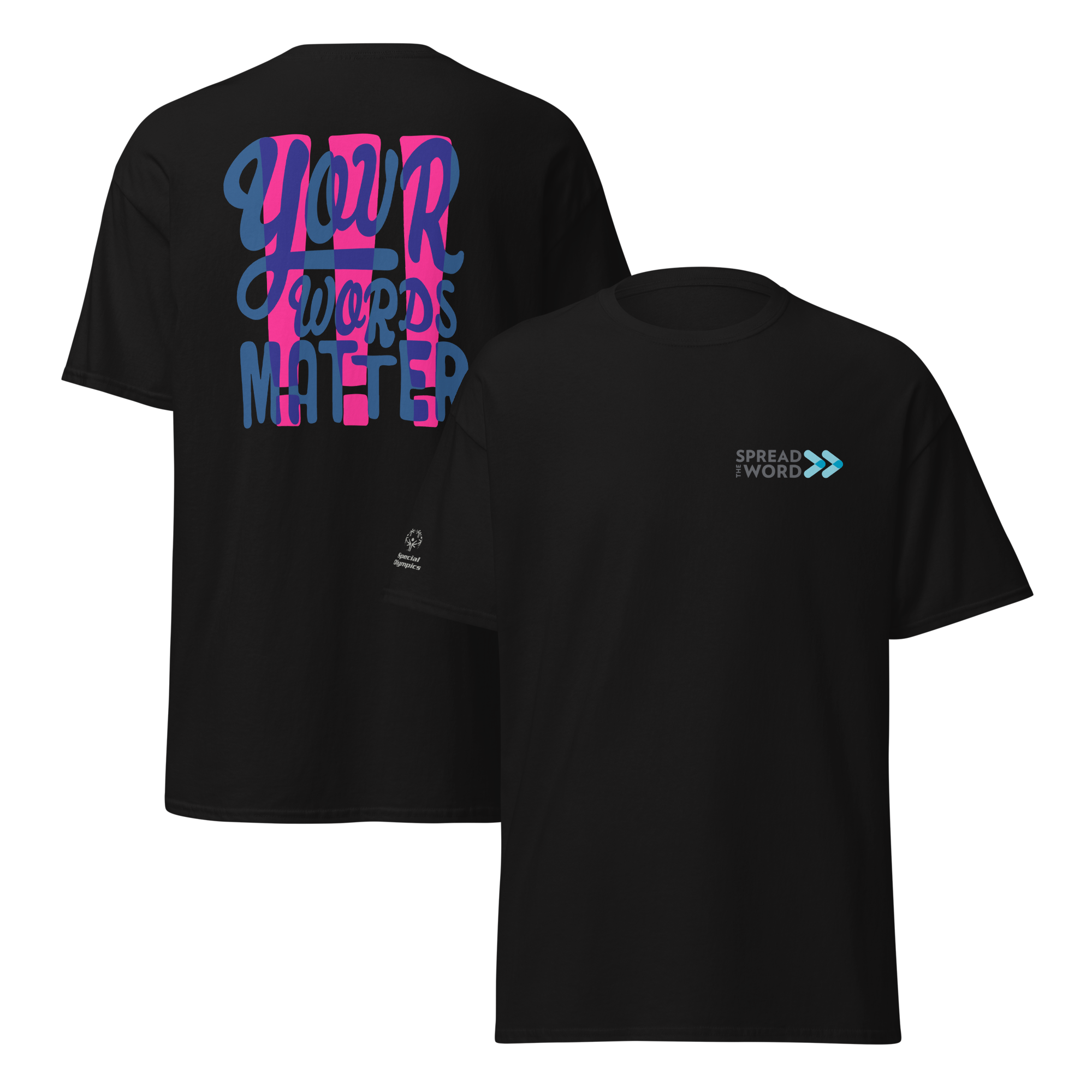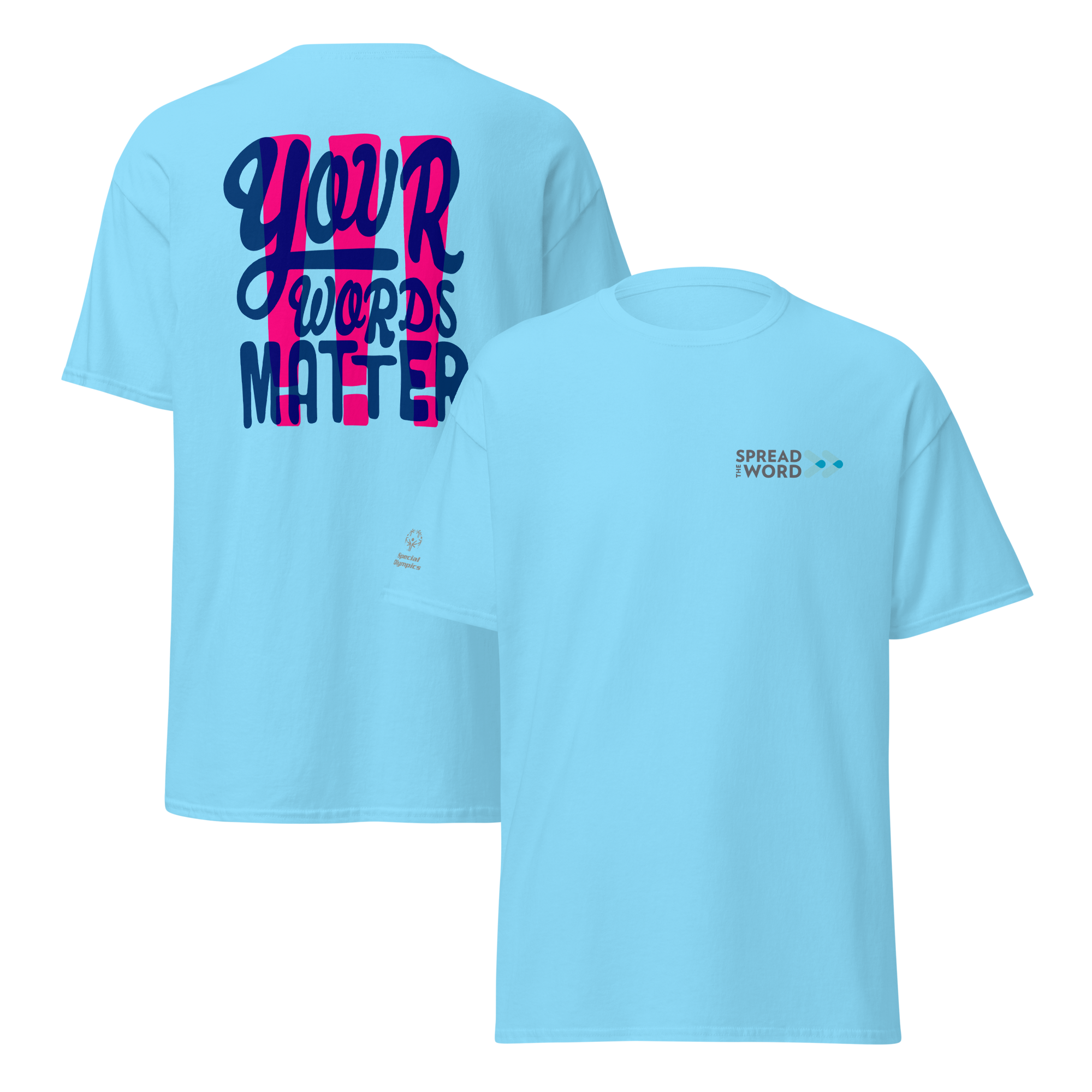What you say matters. The “Your Words Matter” tee reminds us that inclusion starts with the words we choose every day.